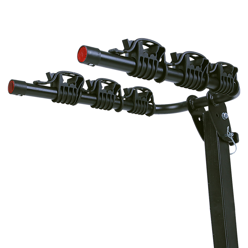 This convenient hitch-mounted rack is capable of transporting up to three bikes. Its folding carrier arms design features a standard 2" hitch receiver.